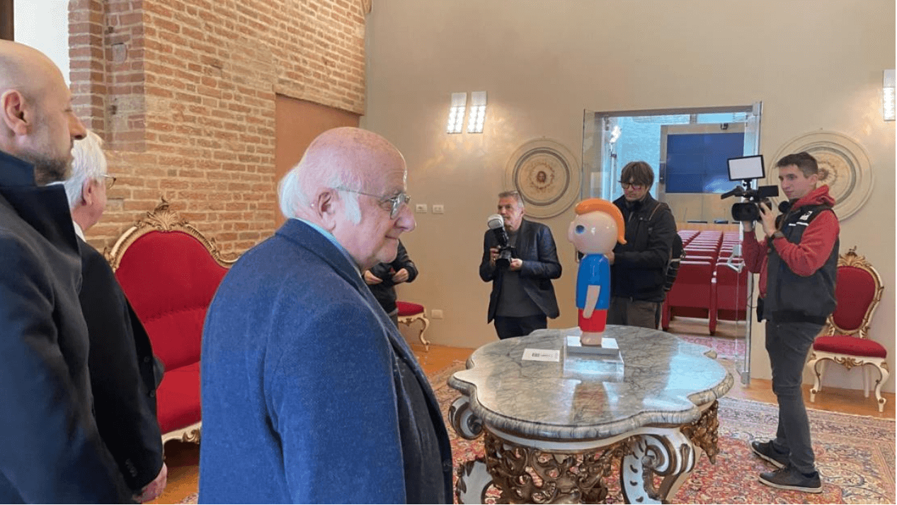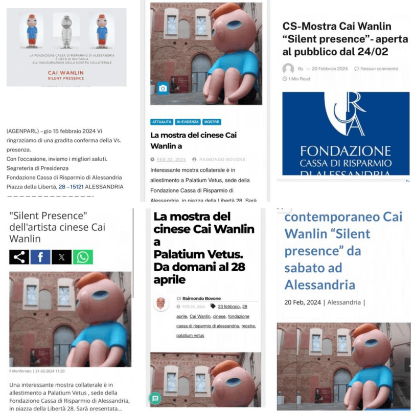 2月23日,蔡万霖个展《沉默的存在》于意大利开幕,展览在亚历山德亚金融资产管理基金会(Cassa di Risparmio di Alessandria)总部维图斯宫(Palatium Vetus)举行。2023 年,艺术家蔡万霖创造的 yy 系列作品在都灵、米兰和西西里岛连续举行四次个展,引发欧洲各大城市的 yy 浪潮。《沉默的存在》为蔡万霖在海外的新年首展,多件 yy 系列雕塑作品亮相,那个无耳无口的男孩形象呈现出别样的力量,这些作品也将由亚历山德亚基金会永久珍藏。