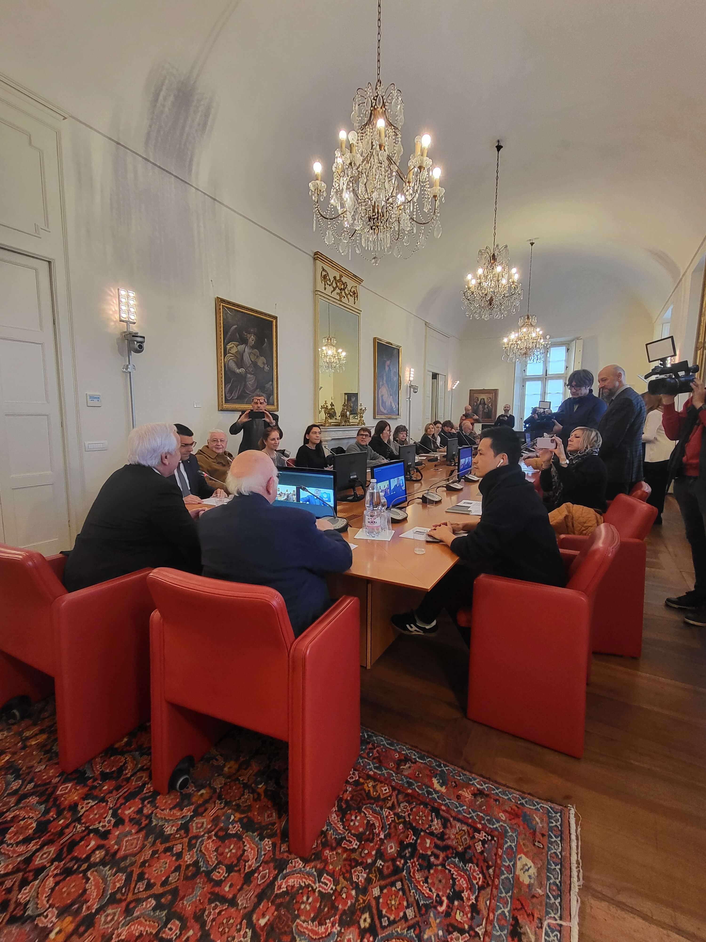本次展览由亚历山德亚金融资产管理基金会、Palazzo del Governoro 有限公司和 ART BOOK WEB 共同推广,策展人是温琴佐·桑福先生(VincenzoSanfo)、玛丽亚·特蕾莎·开罗女士(Maria Teresa Cairo)和维多利亚·奥内托女士(Vittoria Oneto)。基金会主席卢西亚诺·马里亚诺(Luciano Mariano)表示,亚历山德亚基金会将文化中心向公众开放,并引入雕塑、绘画等多种形式的展览和文化活动,推出中国当代艺术家蔡万霖个展《沉默的存在》,与展厅中 18 世纪亚历山德亚肖像艺术家瓜拉的作品形成互文,带来一种全新的艺术氛围和语言式。“蔡万霖先生是伟大的享誉国际的当代艺术家,展览将两位艺术家的创造力结合在一起,见证了各自的时代。”